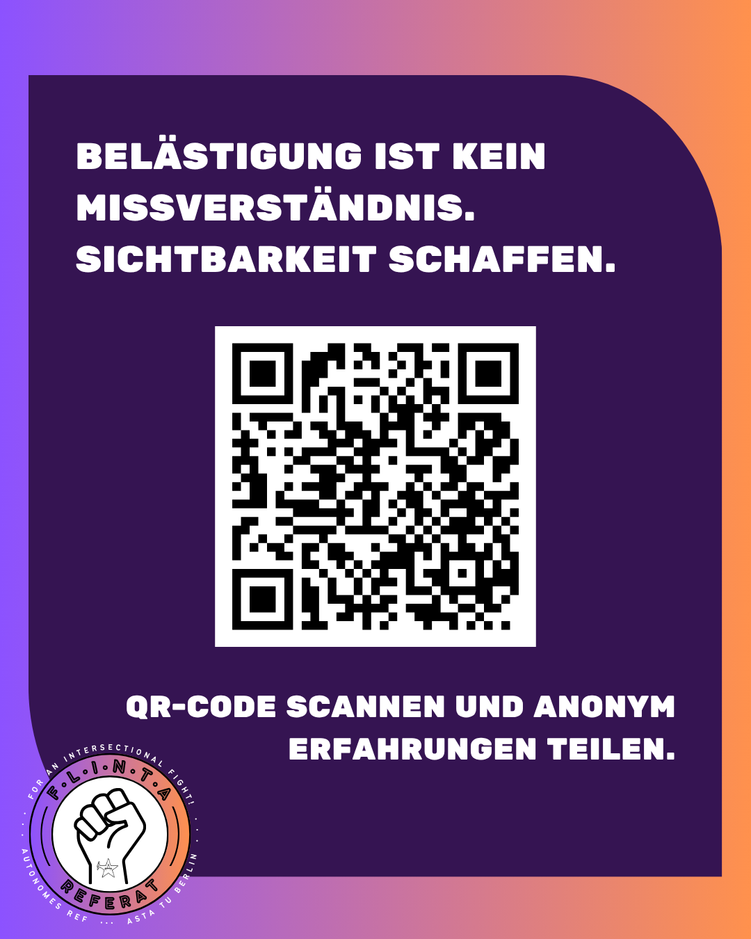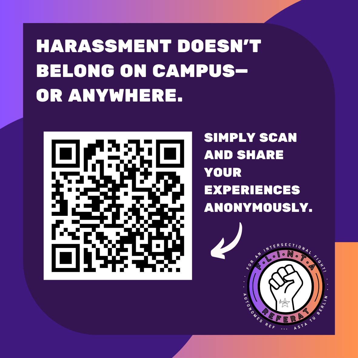 If you have any questions or concerns you can write us via Instagram or mail (flinta@asta.tu-berlin.de). You can find a list of contact points and advice centres that you can turn to in the event of discrimination in our FAQs.